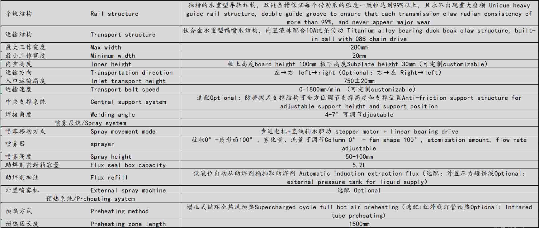 1、運輸系統(tǒng)采用分段浮動式結(jié)構(gòu),新型支撐型材,強度好,有效防止導(dǎo)軌變形,絕無PCB跌落情況發(fā)生。