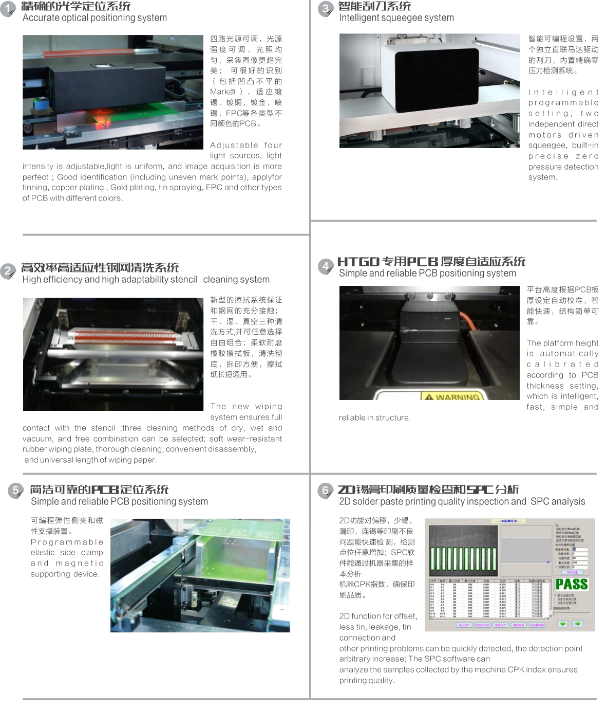 ● 高分辨率的視覺處理,高精度的傳動(dòng)系統(tǒng),懸浮式自適應(yīng)刮刀,精確的板定位處理,靈巧的網(wǎng)框夾緊結(jié)構(gòu),兼具準(zhǔn)確和高靈活性,除了提供高效,精確的印刷功能外,更為客戶提供突出的高性價(jià)比