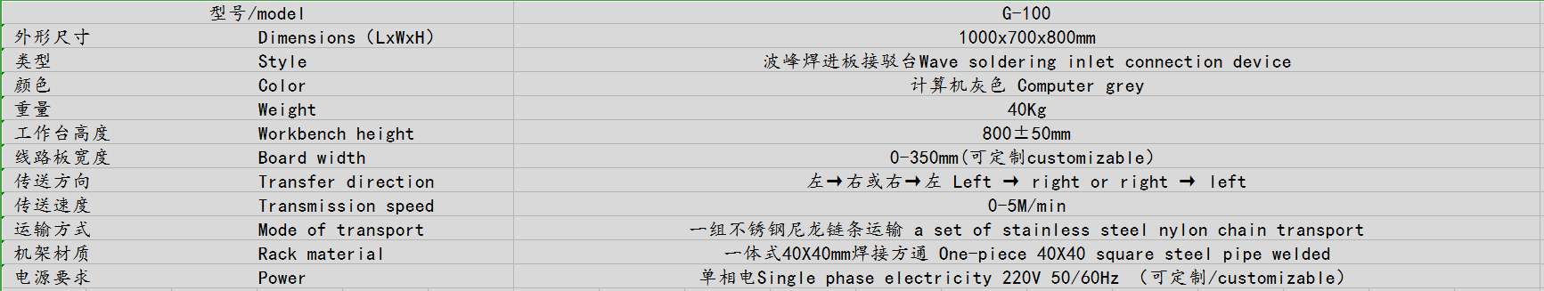 ● 高度和傾斜度可根據(jù)波峰焊調(diào)節(jié),保證產(chǎn)品安全送入波峰焊