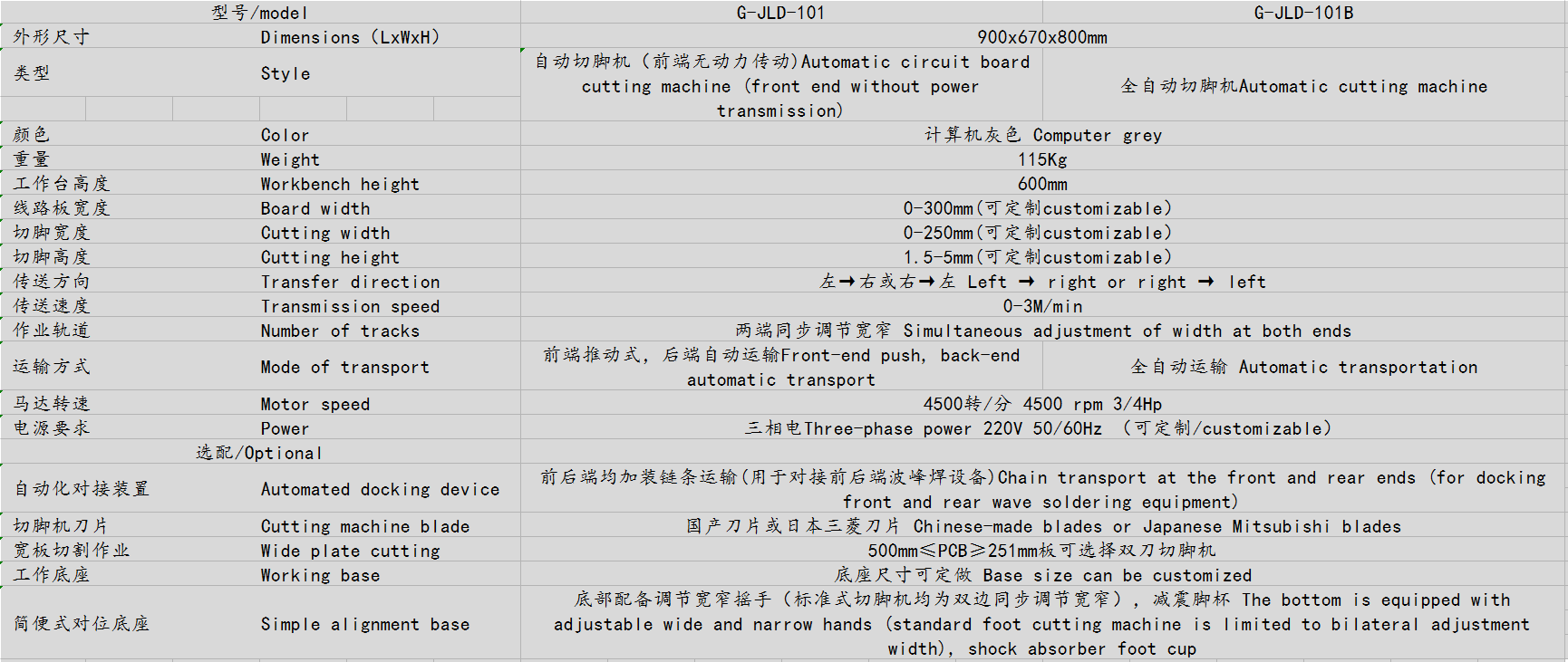 5.標配最大作業(yè)PCB板寬度300mm,刀片最大可切250mm(刀片最大尺寸為250mm),可根據(jù)產(chǎn)品寬度配備雙刀切腳機