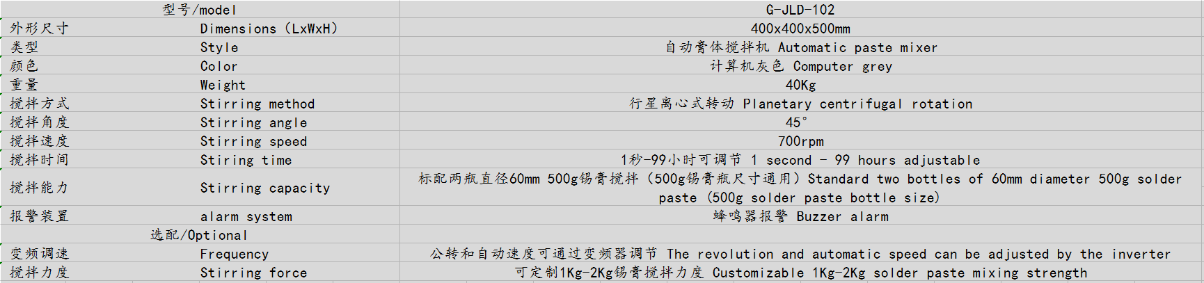 ● 配備平衡砝碼,可用于單瓶錫膏攪拌