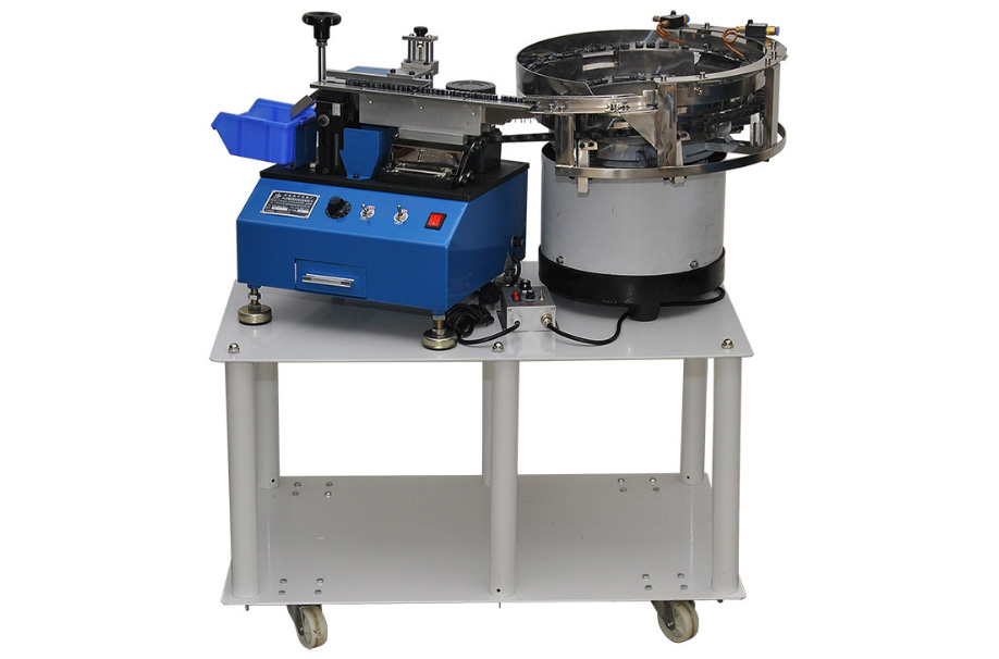 ◆ 此機種加裝可調高軌道的震動盤送料器,震動盤組的輸送軌道可調整寬度以便適用于不同規(guī)格零件之送料,使其適用于生產線對多種規(guī)格需大量剪腳加工的需求。