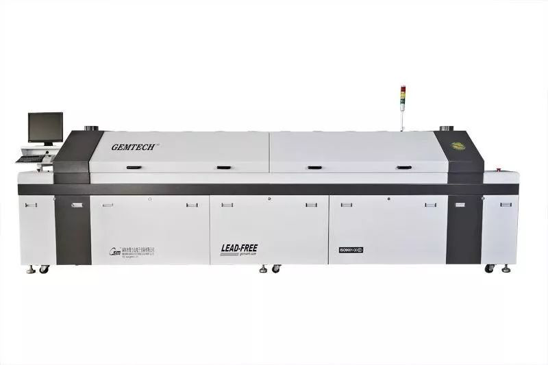 最后,將溫度冷卻到焊膏的凝固點溫度以下,使焊點固化。冷卻速度越快,焊接效果越好。如果冷卻速度過慢,會產(chǎn)生過量的共晶金屬化合物,焊點處容易出現(xiàn)大晶粒組織,降低焊點的強度。一般冷卻區(qū)的冷卻速度在4℃/S左右,會冷卻到75℃。