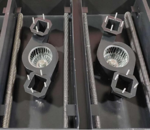晉力達自行研發(fā)熱風循環(huán)技術,通過高溫馬達+風葉吹風,使發(fā)熱管加熱變?yōu)闊犸L,側位回風形成循環(huán),熱風結構熱傳遞效率顯著提升(30–50W/m2K),消除了陰影效應和顏色對吸熱的影響,成為當時主流技術。