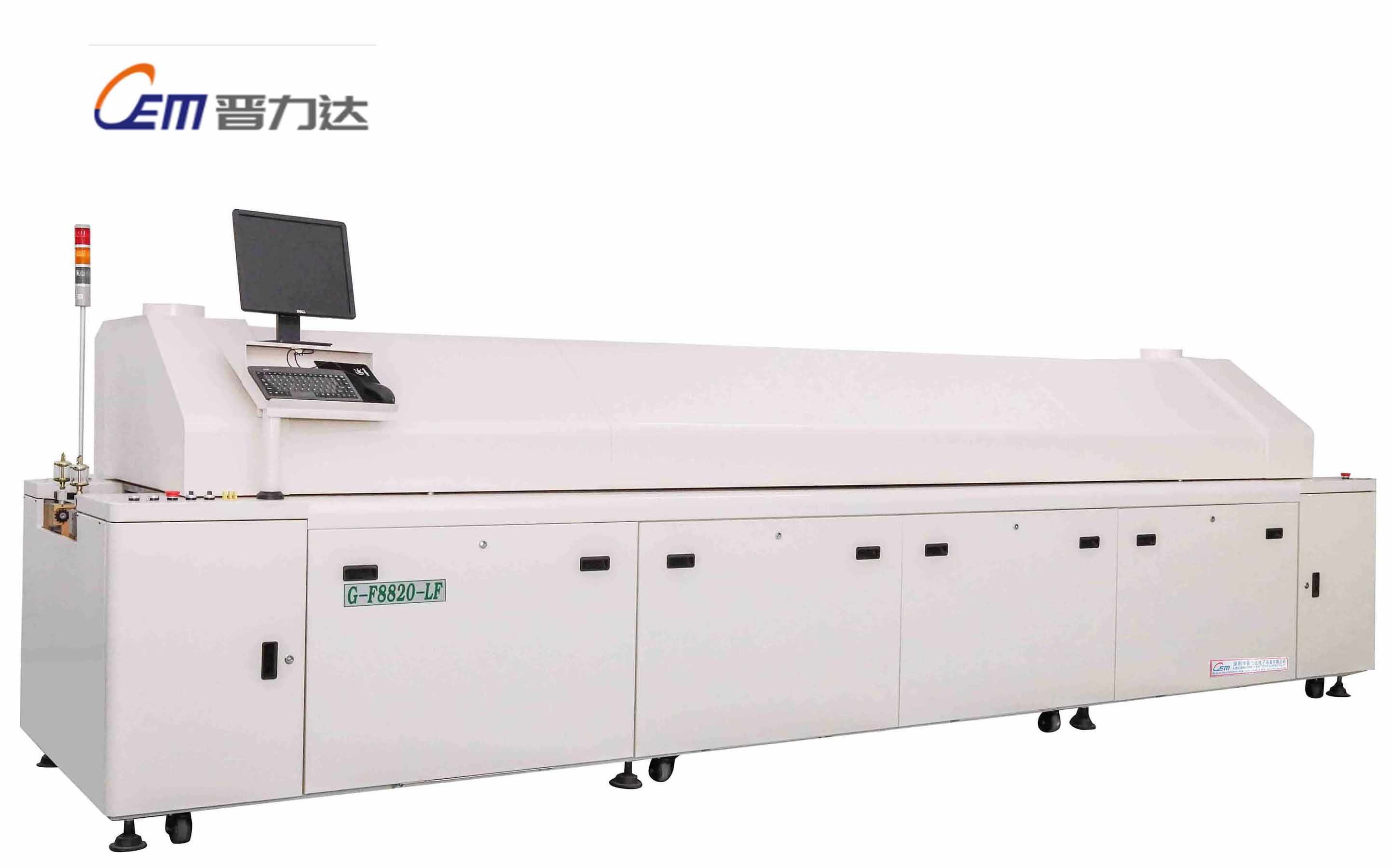 根據(jù)回流焊溫度曲線及回流原理,目前市場上的回流焊機一般為簡易四溫區(qū)回流焊機,還有大型的六、八甚至十二溫區(qū)的回流焊機,而型號為QHL320A的回流焊機采用20段可編程溫度控制,相當(dāng)于20溫區(qū)回流焊機,這樣將回流溫度曲線細分,進而控溫更精確,更加擬合理想的回流溫度曲線,達到完美焊接。