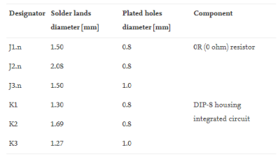 表1. 測(cè)試電阻器和DIP的通孔和焊盤(pán)的尺寸。