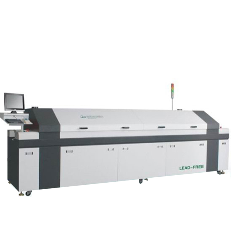 回流焊功能是將芯片元件安裝的電路板送入SMT回流焊室。高溫后,通過高溫?zé)犸L(fēng)回流改變溫度的過程熔化用于焊接芯片組件的焊膏,使芯片組件與電路板上的焊盤結(jié)合,然后一起冷卻。