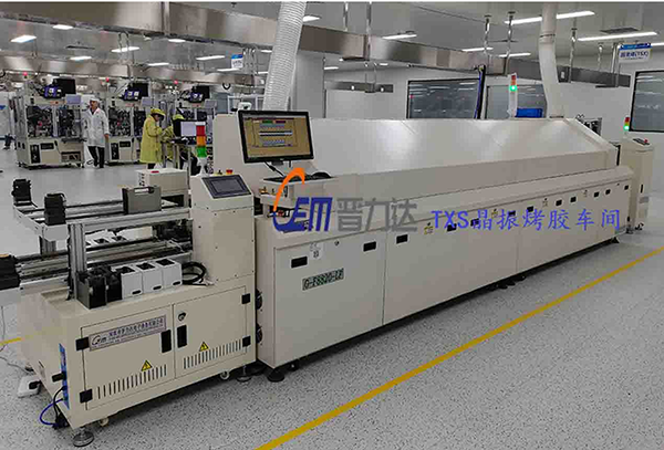 下圖為惠倫晶體重慶分公司TXS晶振烤膠事業(yè)部自動(dòng)上下料機(jī)+固化雙軌回流(拍攝照片經(jīng)由客戶同意)