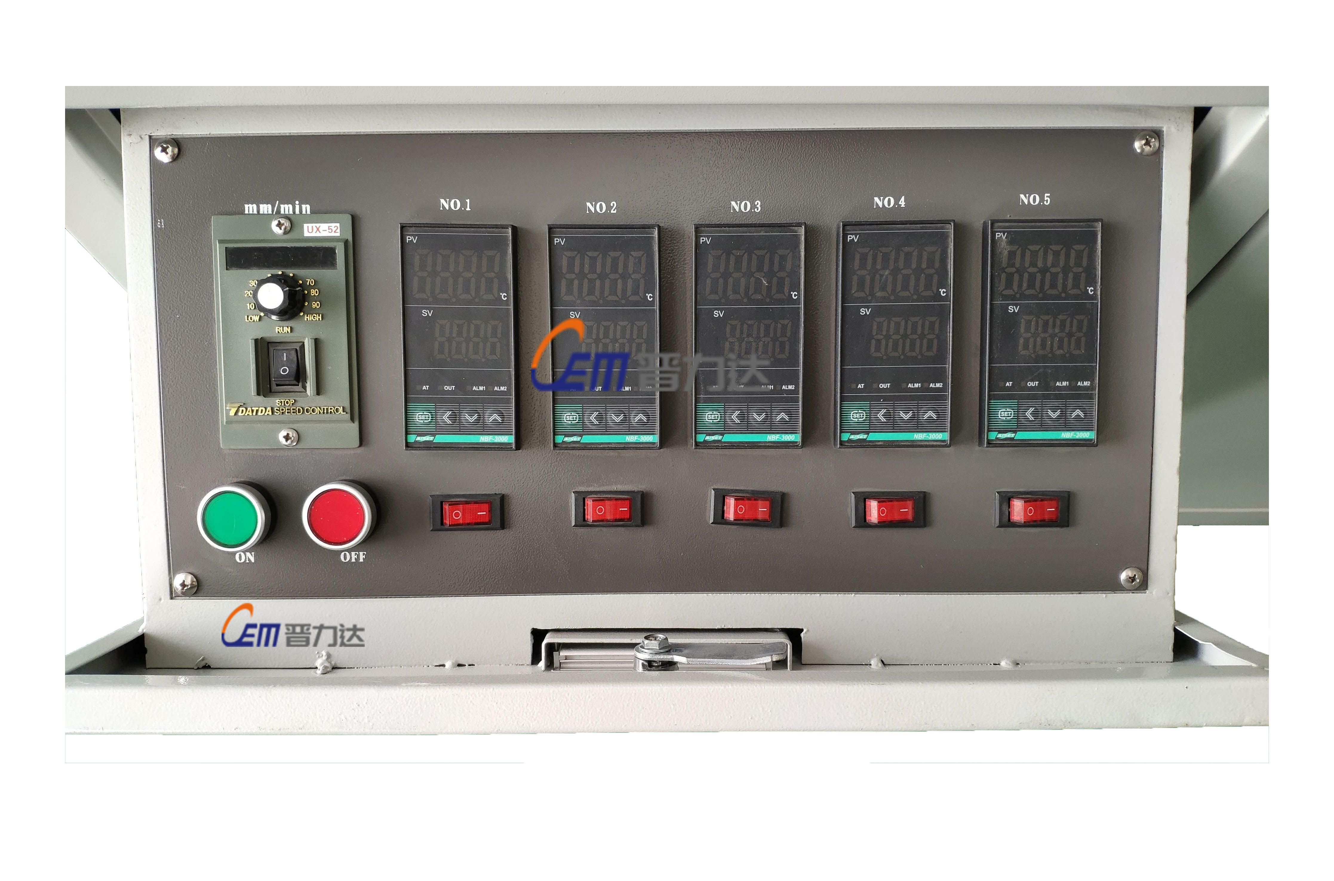 3、預(yù)熱區(qū)、衡溫區(qū)和焊接區(qū)上下加熱,獨立循環(huán),獨立溫控。各溫區(qū)控溫精度±2℃