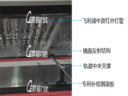 ●紅外管發(fā)熱結(jié)構,并配置鏡面反光板,反射熱能至產(chǎn)品上,減少熱量損耗