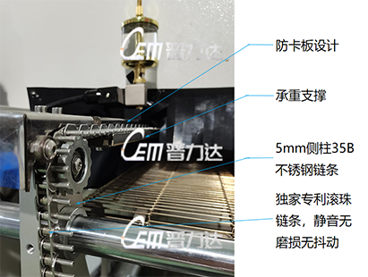 ●獨家雙層式承重鏈條結(jié)構,上層固化,下層治具回流至產(chǎn)線前段
