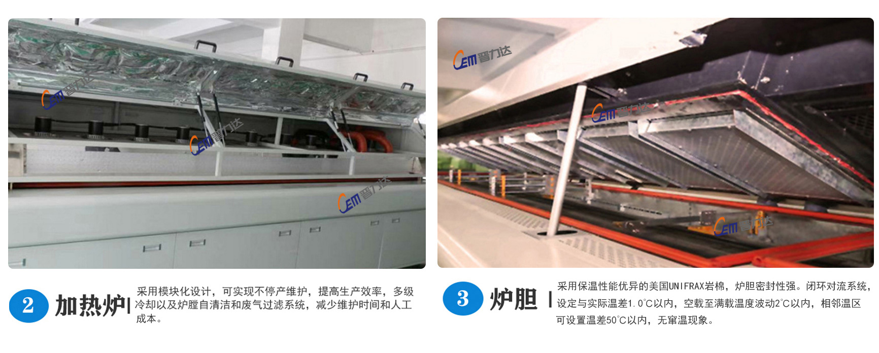 大型導(dǎo)軌式回流焊性能優(yōu)勢: